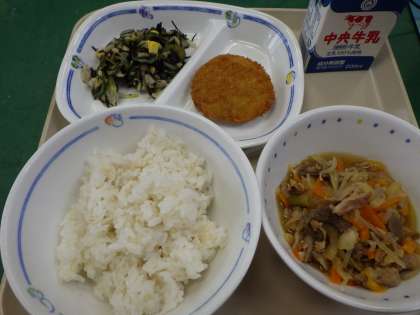 7月15日の給食は・・・ 公開日 2021/07/19 更新日 2021/07/19 お知らせ 7月15日の給食は、豚丼、ひじきサラダ、枝豆コロッケ、麦ごはん、牛乳でした。豚丼を麦ごはんにかけて、ガッツリいただきました。枝豆コロッケもとても美味しかったです。
