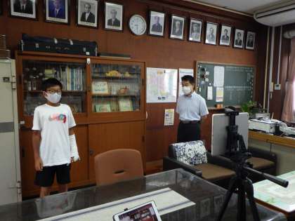 9月1日(水)、夏休み明け最初の登校日のパワーアップタイムに夏季休業明け全校集会をリモート形式で行いました。校長先生と朝のあいさつを行い、その後は校長先生のお話を聞きました。
