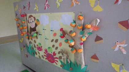 1階昇降口の秋の掲示物が完成しました。地域コーディネーターの方々、ボランティアの方々が心を込めて作成してくださいました。可愛い秋の掲示物、ずっと見ていても飽きません。いつもありがとうございます。感謝の気持ちでいっぱいです。