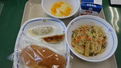 9月24日の給食は・・・ 公開日 2021/09/27 更新日 2021/09/27 お知らせ 9月24日の給食は、炒めビーフン、ぎょうざ、米粉パン、なしポンチ、牛乳でした。中華メニューは、いつも子どもたちに大人気。なしポンチもとても美味しかったです。