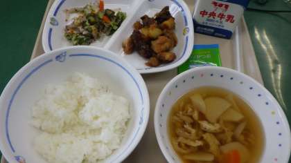 10月11日の給食は・・・ 公開日 2021/10/11 更新日 2021/10/11 お知らせ 10月11日の給食は、いも煮汁、ごはん、ゆかりあえ、レバーとさつまいもの甘辛煮、ふりかけ(のりかつお)、牛乳でした。レバーとさつまいもの甘辛煮は、味付けが抜群で、ごはんのお供に最高でした。