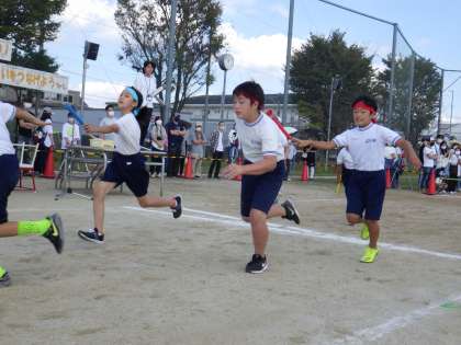 5・6年生の全員リレーは、バトンパスのスムーズさが見事でした。さすがは高学年。力強い走りがとにかく格好良かったです。
