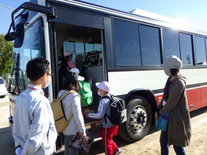 2年2組がトヨタの森へ 公開日 2021/10/29 更新日 2021/10/29 各学年から 本日は、2年2組の子どもたちがトヨタの森で出かける日です。校長先生に「行ってきまーす!」と元気いっぱいあいさつをしてバスに乗り込んでいきました。昨日は、1組さんが出かけましたが、甘い香りのする葉っぱのにおいを嗅いだり、羽のとれたスズメバチ(透明なケースに入れられたもの)の様子を観察したりと、大自然の中でたっぷり楽しく学んだようでした。