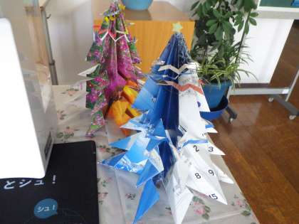 本校の来賓用玄関に、地域の方から素敵なプレゼントが届きました。折り紙で作られたクリスマスツリーです。玄関がぱっと華やかになりました。学校のためにいつもありがとうございます。大切に飾らせていただきます。
