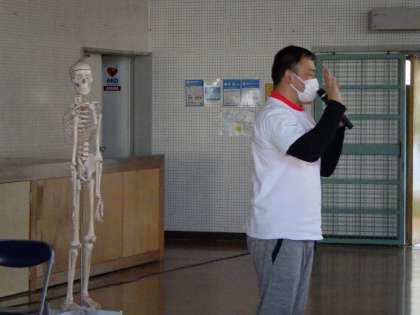 11月17日(水)の3時間目に、修カイロプラクテックの中尾先生をお招きし、学校保健委員会を実施しました。テーマは「体いきいき・心わくわく・健康づくり−体幹のしっかりした姿勢づくりをしよう!−」です。