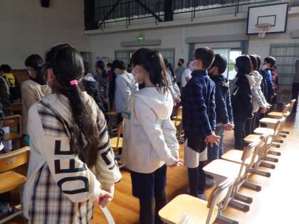 5・6年生は体育館で、1〜4年生は各教室で受講しました。