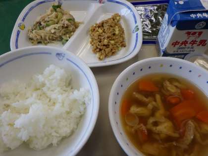 11月25日の給食は、いものこ汁、切干しだいこんとしいたけのサラダ、ごはん、納豆巻き、手巻きのり、なしゼリー、牛乳でした。本日は豊田ブランドの日ということで、豊田市でとれた食材を使用した献立でした。ごはんはもちろん大地の風、さといもやにんじん、油揚げ、納豆、しいたけ、なしなど、豊田市はいろいろな食材を作っていることが再確認できました。