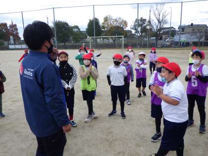 グランパスクリニック 公開日 2021/11/25 更新日 2021/11/25 各学年から 11月24日(水)、1・2年生がグランパスクリニックを実施しました。2時間目は、2年生、3時間目は1年生の児童を対象に、グランパスの方々からサッカーをわかりやすく教えていただきました。楽しくゲームをしてあっという間に時間が過ぎてしまいました。