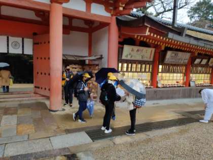 奈良公園でグループ活動中