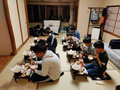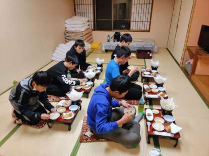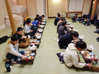コロナ対策のため、一方を向いての食事になりますが、みんな喜んで食べています。食事の後はものづくり体験になります。