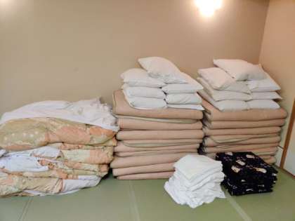 修学旅行2日目になりました。しっかり寝られた子が多かったようです。使わせていただいたお布団を元の状態にしっかりと片付けて、今から朝食です。