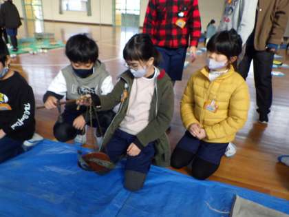 12月10日(金)の1・2時間目に郷土資料館から講師の先生をお迎えし、3年生が昔の道具出前授業を実施しました。昔の道具について実際に見たり触ったりする中で、「その道具をどのように使っていたのか」「今の道具だといったい何にあたるのか」などについて考えました。アイロンや手動の洗濯機、わらじや測りなどに触れながら、昔の人たちの暮らしに思いを馳せました。