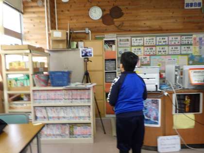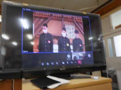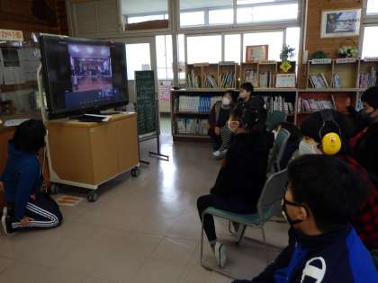 1月20日(木)の2時間目に、特別支援学級の子どもたちが美里中学校との交流会を実施しました。新型コロナウイルス感染防止のため、リモートで行いました。自己紹介から始まり、その後は中学生の皆さんによるトーンチャイムの演奏を聴きました。また、中学校の紹介ということで、授業についてや服装、部活動などについてわかりやすく説明してもらいました。直接交流することができなかったけれど、広川台小を卒業していった先輩たちの顔を見ることができ、みんなとても嬉しそうでした。