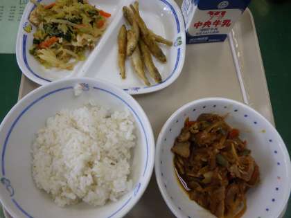 2月17日の給食は・・・ 公開日 2022/02/21 更新日 2022/02/21 お知らせ 2月17日の給食は、豚みそ丼、ごまあえ、わかさぎのから揚げ、麦ごはん、牛乳でした。豚みそ丼は、みそがしっかり具材にしみていて、とっても美味しかったです。ごはんがすすむおかずでした。