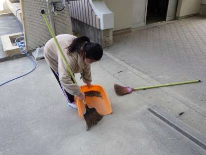今日もせっせと掃除を行っている子どもたち。無言清掃で自分の担当場所を黙々と行っています。