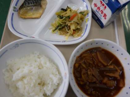 3月7日の給食は、キムチ入りみそ汁、アーモンドあえ、さばの塩焼き、ごはん、牛乳でした。キムチの入ったお味噌汁は、ピリっと辛くてとても美味しかったです。さばの塩焼きは油がのっていてごはんとよく合いました。