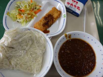 3月9日の給食は・・・ 公開日 2022/03/11 更新日 2022/03/11 お知らせ 3月9日の給食は、肉みそかけ、甘酢あえ、いかフライ(ウスターソース)、ソフトめん、牛乳でした。肉みそをソフトめんにかけて、美味しくいただきました。肉みそが甘辛くて食欲をそそりました。