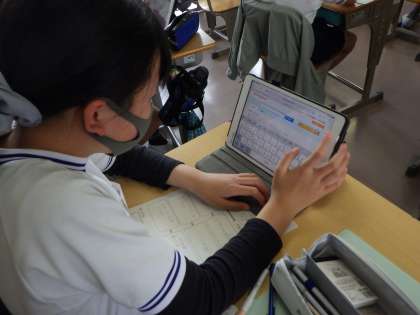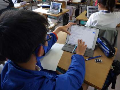 5年生総合でタブレットを使って調べ学習 公開日 2022/05/18 更新日 2022/05/18 お知らせ 5年生の教室をのぞいてみると、総合的な学習の時間「命を守るためにわたしたちにできること」の調べ学習を行っていました。子どもたちは、タブレットの扱いには慣れたもの。スイスイっと活用し、自分の疑問に思ったことについて一生懸命調べてワークシートにまとめていました。