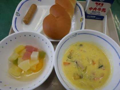 6月24日の給食は・・・ 公開日 2022/06/24 更新日 2022/06/24 お知らせ 6月24日の給食は、ツイストパン、かぼちゃのクリーム煮、ウインナー、ゼリーミックス、牛乳でした。甘くてさわやかな味わいのゼリーミックスに、子どもたちも大喜びでした。