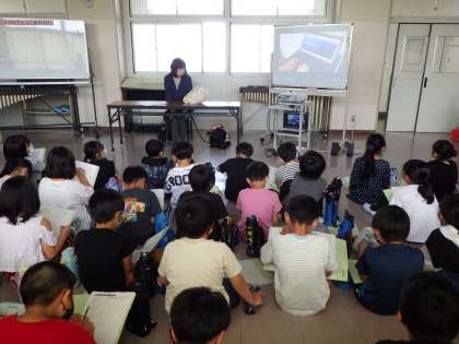 6月24日(金)の3・4時間目、3年生が盲導犬学習を実施しました。視覚障がい者の方と盲導犬のビリーが来校し、普段のくらしの中で盲導犬がどんな仕事をしているのか、また、日頃の生活でどんなことに困っているのかなどについて詳しく教えてくださいました。