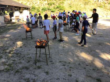 ↑ 焼きバナナの準備中 ↓ 上手に焼けました おにぎりと焼きバナナです