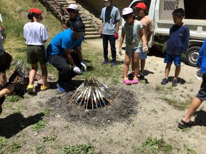美味しい〜!と声をあげて、焼き立ての鮎を頬張っています