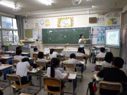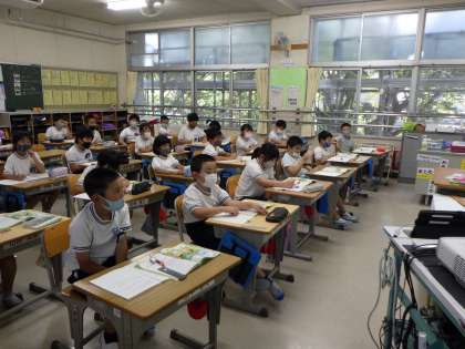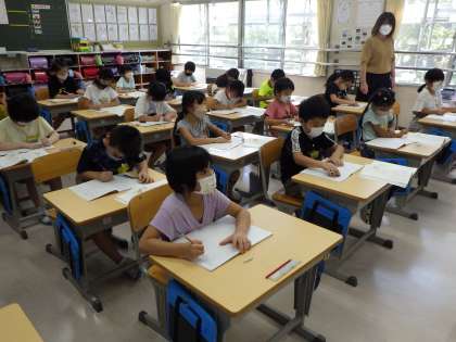 夏休みが終わり、授業が始まって3日目。子どもたちは、たっぷり夏休みを満喫したのか、とても落ち着いて静かに授業に取り組んでいます。