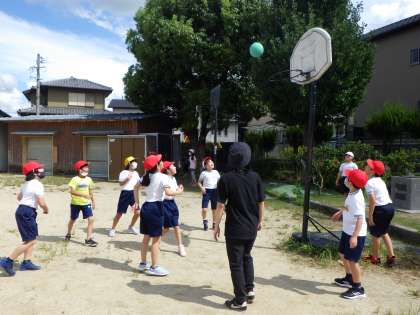 4年2組は、担任の先生も交えてバスケットを、5年2組は、学級遊びということでドッジボールをしていました。7月は、WBGTが高くなかなか外で遊べませんでしたが、今日はなんとかセーフでした。みんなとっても嬉しそうです。
