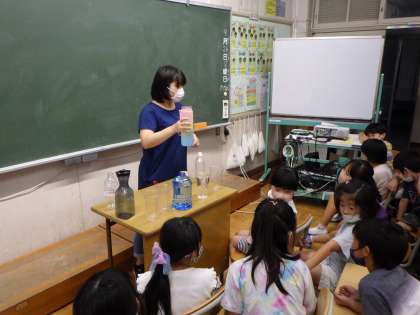 「水筒と透明な容器のどちらにたくさんの水が入っているでしょう?」