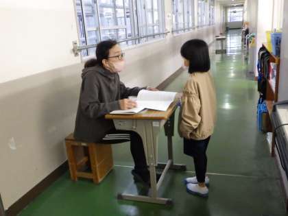 本日は、前期の最終日ということで、子どもたちは担任の先生から通知表をもらっていました。担任の先生は一人ひとりに「ここをよく頑張ったね!」「後期はこういうところを頑張るとさらに伸びるよ」とていねいにアドバイスしていました。3連休をはさんで11日からは後期です。新たな目標をしっかりもって、また張り切っていきましょう!