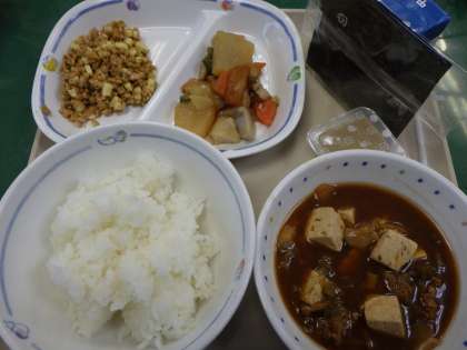 11月7日の給食は・・・ 公開日 2022/11/08 更新日 2022/11/08 お知らせ 11月7日の給食は、豊田のみそ汁、ごはん、さといもとだいこんの甘辛煮、納豆、手巻きのり、なしゼリー、牛乳でした。今日は、豊田ブランドの日でした。