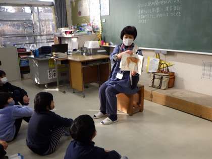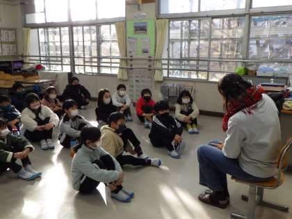 アリスの森さんによる本の読み聞かせ 公開日 2022/12/16 更新日 2022/12/16 お知らせ 12月16日(金)のパワーアップタイムは、アリスの森さんによる本の読み聞かせ。どの学級も食い入るように聞いていました。高学年の子どもたちも、真剣に聞いていました。寒い中、子どもたちのために来校していただき、ありがとうございました!