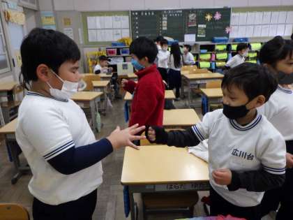 1年生は、ALTのジェームズ先生と楽しく外国語活動をしていました。