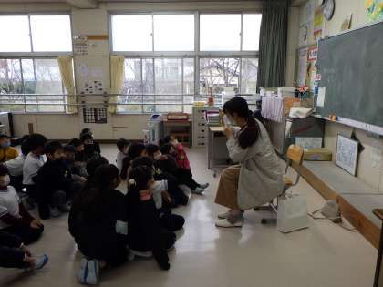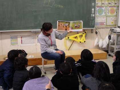 アリスの森さんによる本の読み聞かせ 公開日 2023/02/03 更新日 2023/02/03 お知らせ 本日、2月3日のパワーアップタイムにアリスの森さんによる本の読み聞かせがありました。たくさんのボランティアの皆さんに寒い中ご来校いただき、ためになる本、おもしろい本、季節に合った本などさまざまな本を読んでいただきました。ありがとうございました!