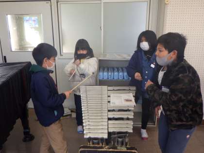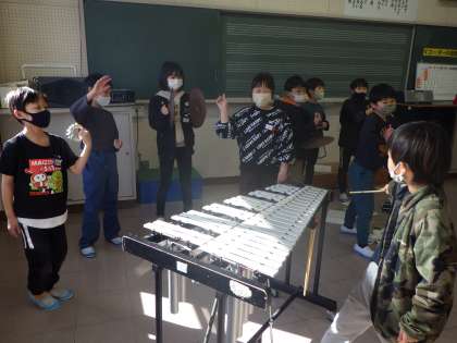音楽室からきれいな魔法の音が聴こえてきました。3年生がグループに分かれ、「おかしの好きな魔法使い」の間奏部分の魔法の音を作っていました。ウインドチャイムや鉄筋を上手に組み合わせ、わくわくするような魔法の音を考えていました。