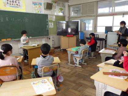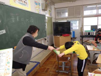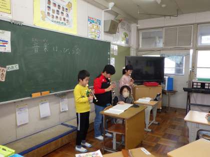 特別支援学級の音楽発表会 公開日 2023/03/06 更新日 2023/03/06 お知らせ 3月3日、特別支援学級の児童が音楽発表会を行いました。リコーダーや鍵盤ハーモニカ、電子ピアノ、打楽器などを使い、日頃の練習の成果を堂々と発表しました。発表の後は、各担任の先生から頑張った証として、表彰状をもらいました。今もっている自分の力を精一杯出し切った感動感動のすばらしい音楽発表会でした。