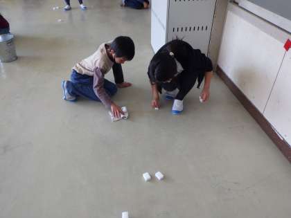 3年生では、1年間お世話になった教室の床をみんなできれいにしていました。