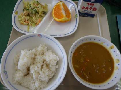 3月9日の給食は・・・ 公開日 2023/03/10 更新日 2023/03/10 お知らせ 3月9日の給食は、カレーライス、麦ごはん、チキンサラダ、デコポン、牛乳でした。 デコポンはとっても甘くておいしかったです。