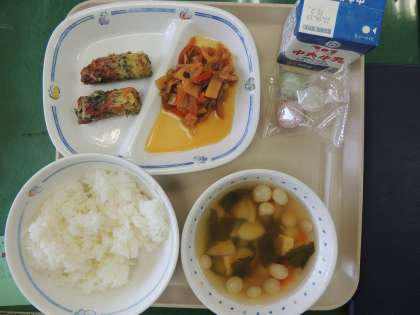 4月13日(木)の給食は… 公開日 2023/04/13 更新日 2023/04/13 お知らせ 今日の給食は、ご飯、ふだま汁、ちらしずしの具、ちくわの磯辺揚げ、花見団子、牛乳でした。お団子は、ふわふわもちもちでおいしかったです。