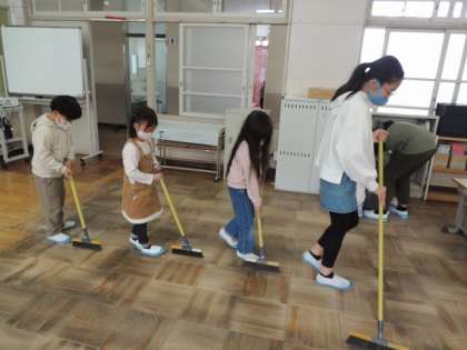 掃除の時間 公開日 2023/04/14 更新日 2023/04/14 お知らせ 掃除の時間は、みんな時間いっぱいまで掃除をし、学校をきれいにしています。1年生には6年生のお兄さん、お姉さんが掃除の仕方を教えてくれています。6年生は、ほうきの使い方、雑巾のしぼり方など、一つ一つ丁寧に教えています。1年生は6年生の動きをお手本として、一生懸命真似をしながら掃除をしています。