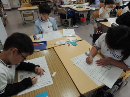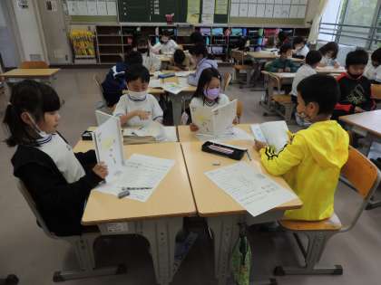 2年生は国語で、「風のゆうびんやさん」を学習しています。いよいよグループごとに登場人物になりきって、音読発表会をします。おうちでもたくさん練習してきてくださいね。