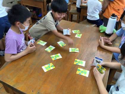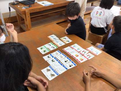 主に海のゴミについて、神経衰弱形式のゲームや「カッパの清吉くん」のビデオを見てより理解を深めました。グループで話し合った感想では、自分たちでできることをしていかないといけないという前向きな意見が多く出されました。