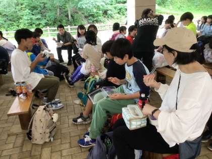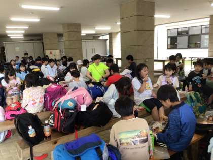 じゃぶじゃぶ池で、思う存分遊んだ後、シャワーを浴び、待ちに待ったお弁当タイムです。