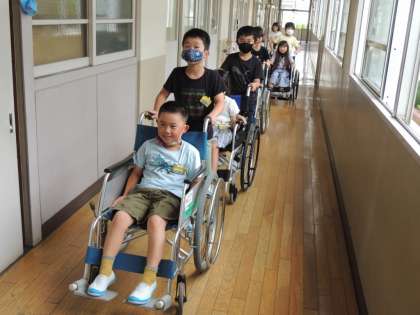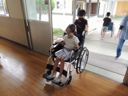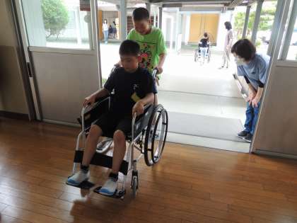 車いす体験(3年生) 公開日 2023/07/07 更新日 2023/07/07 お知らせ 3年生の福祉体験。今日は、車いす体験です。 実際に車いすに乗って、初めて気付くことがたくさんありました。車いすを押す側の子も「段差があります、向きを変えますなどと声を掛けると、車いすに乗っている人は安心できるよ」と教えてもらい、声を掛けながら車いすを押すことができました。