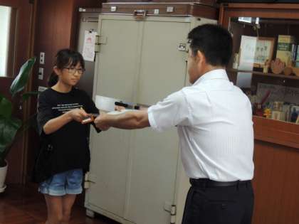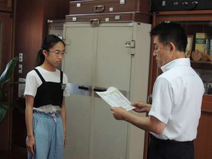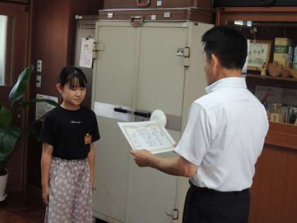 まず、「社会を明るくする運動 標語」の表彰をしました。広川台小学校から3名の子が選ばれ、校長先生から賞状を渡されました。