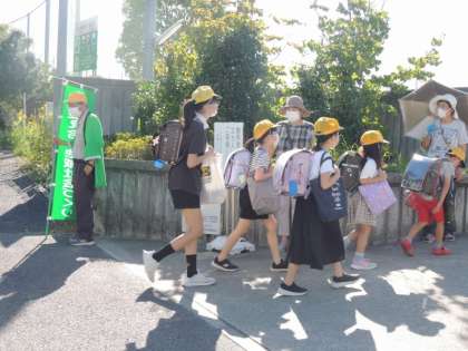 登校中、正門と南門に民生委員の方たちが立哨され、子どもたちに挨拶をしてくださいました。