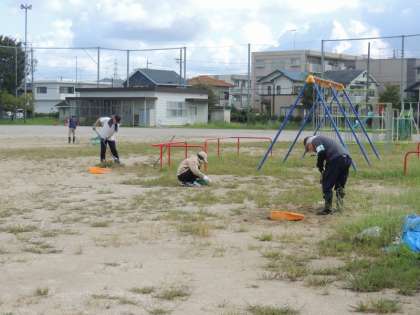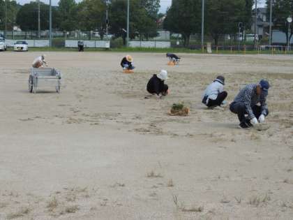 本日、ボランティアのみなさんが運動場の草取りをしてくださいました。