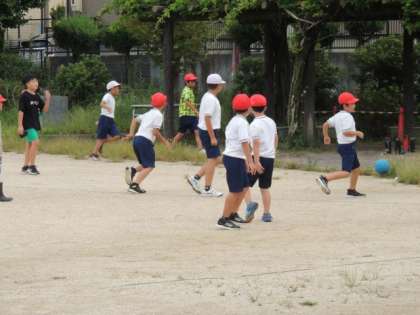 今日は、なかよしタイム(2時間目後の放課)は外で遊べませんでしたが、にこにこタイム(お昼の長放課)には、暑さ指数が28以下になり、外で遊ぶことができました。