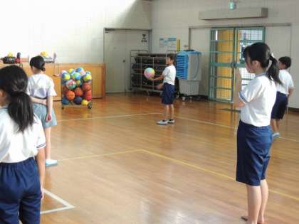 バレーボールクラブ。サーブを相手コートに入れようとがんばっていました。