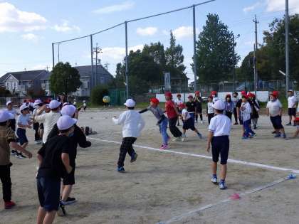 ドッジボールの好きな子も嫌いな子もいると思いますが、とても盛り上がっていました。秋晴れの下、大勢でするドッジボールを楽しんでいました。
